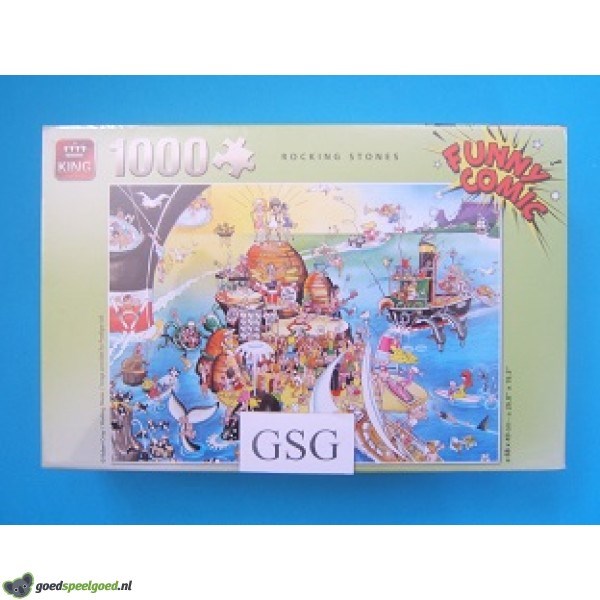 Puzzel van 1000 stukjes met als thema rockin stones van het merk King. Zit nog in de ongeopende originele verpakking.
