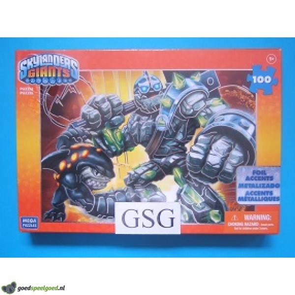 Puzzel van 100 stukjes met als thema Skylanders Giants Crusher van het merk Clementoni. Zit nog in de ongeopende originele verpakking.