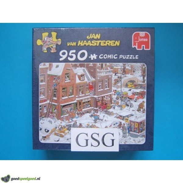 Puzzel van Jan van Haasteren uit 2016 van 950 stukjes met als thema street life van het merk Jumbo. Zit nog in de ongeopende originele verpakking.
