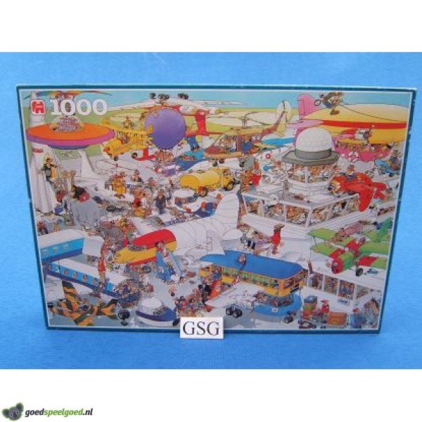 Puzzel van Jan van Haasteren uit 1991 van 1000 stukjes met als thema vliegveld van het merk Jumbo