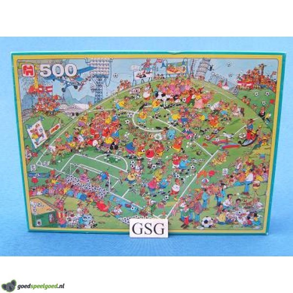 Puzzel van Jan van Haasteren uit 1996 van 500 stukjes met als thema voetbal van het merk Jumbo.