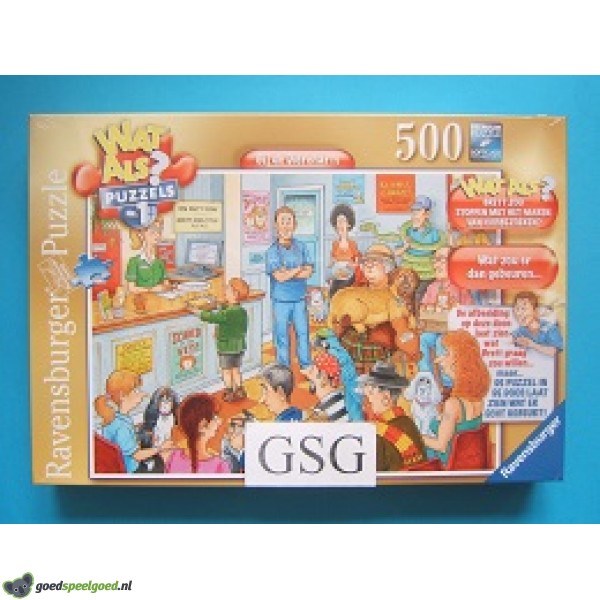 Puzzel van 500 stukjes met als thema bij de dierenarts van het merk Ravensburger. Wat als Brett zou stoppen met het maken van huisbezoeken? De afbeelding op de doos laat zien wat Brett graag zou willen. Maar de puzzel in de doos laat zien wat er echt gebeurt. Zit nog in de ongeopende originele verpakking.