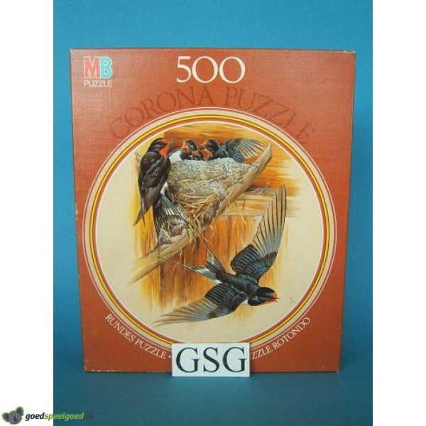 Ronde puzzel van 500 stukjes met als thema zwaluwen van het merk MB.