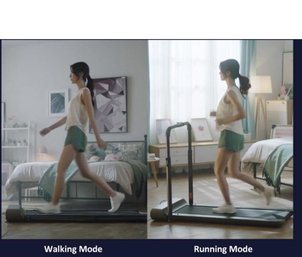 The R1 pro treadmill has two unique designs, the regular form can be a treadmill, and the armrests can be stored down to become a more space-saving walker.