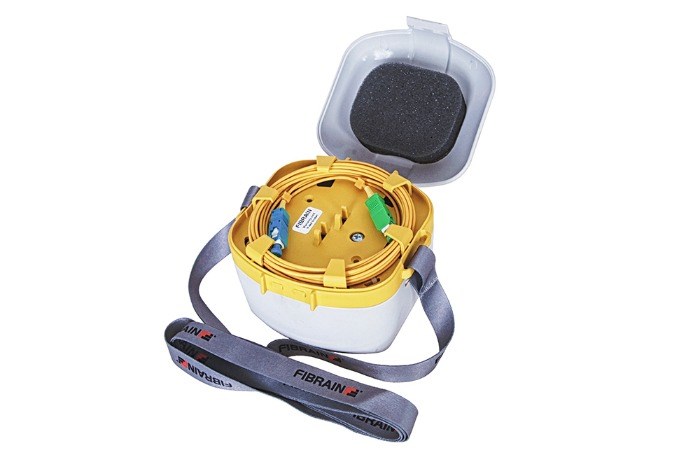 Fibrain OSC inrun fiber - OTDR Starter Cube single-mode SM met SC/APC-SC/UPC connectoren met een lengte van 1000m in een klein en lichtgewicht pakket voor de installateur.