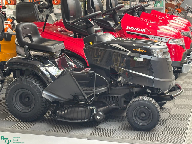 Een druk op de knop Het maaidek word namelijk ingeschakeld d.m.v. een elektrische mes koppeling. Met zijn 14 PK sterke motor en zijn zij uitworp kan deze machine namelijk ook het langere gras aan. Deze zitmaaier word tevens standaard geleverd met bumper en mulchset!