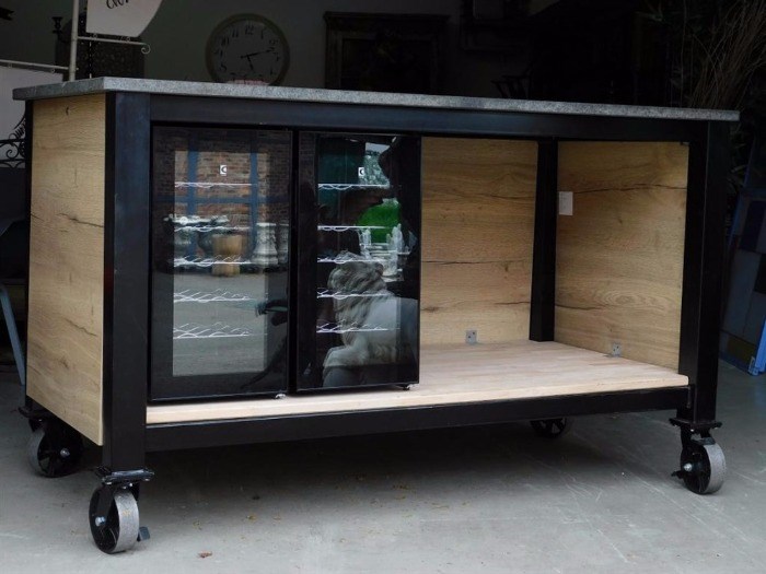 Een bijzondere bar/kookeiland op wielen, dus zeer makkelijk te verplaatsen!