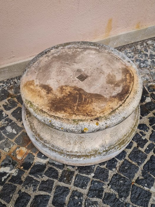 Gemaakt van Vicenza steen, in prachtige patina, afbeelding van een muze met bloemen.