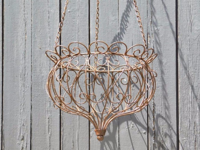 Hanging basket met muurhaak - donkerbruin met roest - vintage look