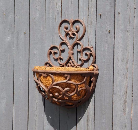 Mooie klassieke muurhanger met kokosvulling, gemaakt van gietijzer.