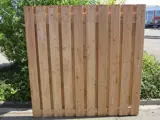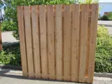 Afmeting is 1800 x 1800mm 15 verticale planken vericaal fijnbezaagd voor een robuuste uitstraling RVS geschroefd