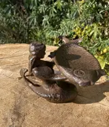 Vogelbad in roestbruin met een zittende zeemeermin, erg fraai!!