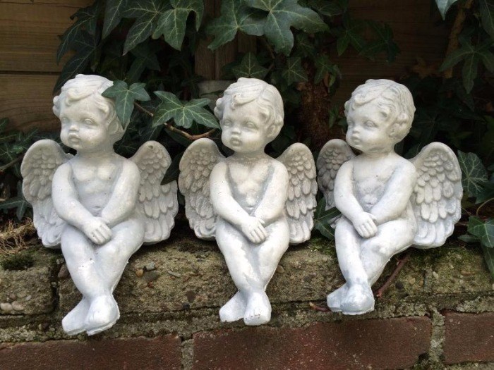 Drie kleine zittende engelen uit vol steen, prachtig om te zien