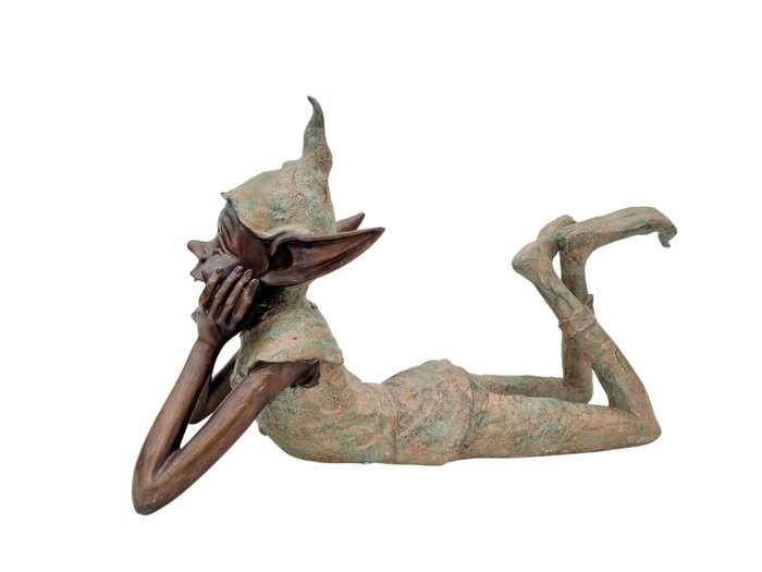 Vrolijke tuinkabouter gemaakt uit brons. Prachtig stuk met zeer veel detail. Het tuinsculptuur heeft de volgende afmetingen: