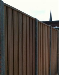 Hardhout/beton schutting per 2 meter incl. tuinscherm hardhout 14 planks 15x140mm, RVS geschroefd, V-groef en geolied