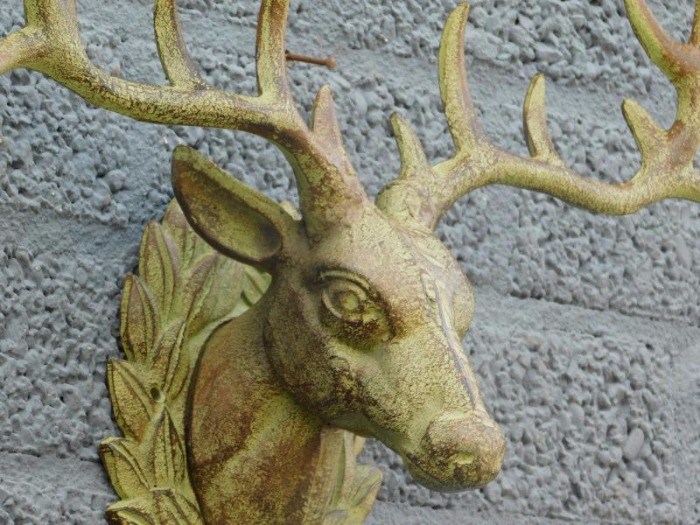 Leveringsomvang: 1x wandornament hert - groen/bruin - gietijzer