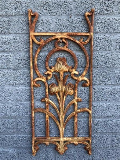 Metalen sierrek, art nouveau, rozenrek als landelijke decoratie, wandrek tulp.