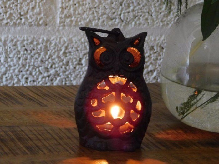 Uil als lantaarn, theelichthouder , gietijzer