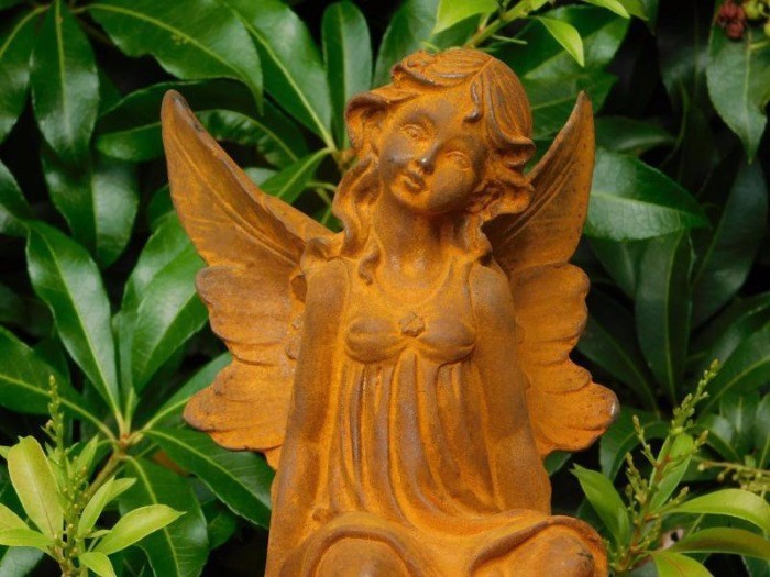 Een zeer gedetailleerd beeld van een Elf op een bloembol, volledig gemaakt uit gietijzer!