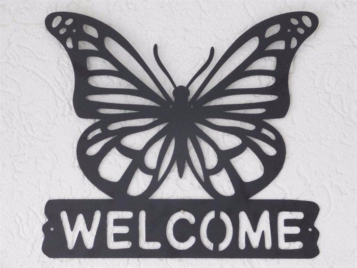 Leuk wandornament/welkomstbord met vlinder ''Welcome'' gemaakt van metaal.
