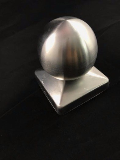 Paal cover, RVS, met bol, 9,1 cm x 9,1 cm.