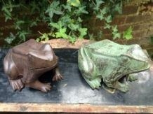 Levering: 2 kikkers, 1 x goen en 1 x bruin, vol gietijzer.