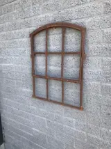 Dit is een mooi stalraam die u kunt inbouwen, maar ook kunt gebruiken als wanddecoratie. Het heeft een rustiek oppervlak en is gemaakt van gietijzer. Dit raam heeft een gedeelte dat open geklapt kan worden voor de doorluchting als u het raam gaat inbouwen.