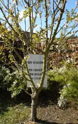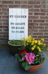 Houten bord met een leuke tekst, dit zal bij elke tuinliefhebber een glimlach op het gezicht laat komen.