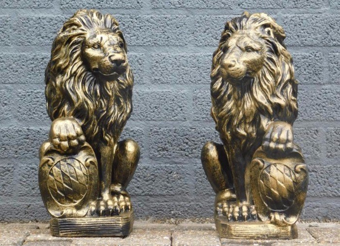 Leveringsomvang: 1x set van 2 leeuwen - zwart/goud - poly