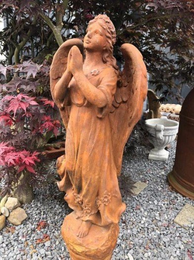 Stenen engel, engelbeeld in oxide, graf engel.
