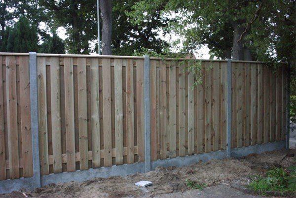 Hout/beton schutting per 2 meter chroomvrij geimpregneerd gewaxd waterafstotend geschroefd grenen 17 planks tuinscherm, breedte 14cm, dikte 15mm, incl. zware betonpaal 10x10x270cm + betonplaat + bevestigingsbeugels, 200X190cm, ex. btw. LET OP: LAAGSTE PRIJS VAN NEDERLAND PRIJS PER SET VAN +/- 2 METER, dus niet per meter! Tegen meerprijs thuisbezorgd!