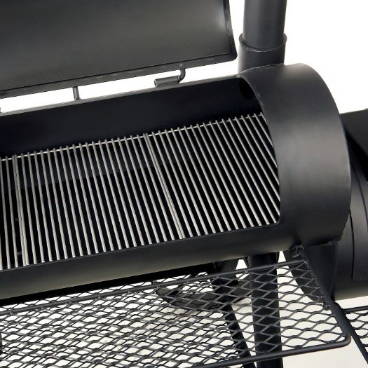 De verlengde ‘Longhorn’ uitvoering speciaal met grotere grill roosters en een grotere vuur box, zeer geschikt voor voor grotere groepen. Vervaardigd uit 6.35 mm dik buisstaal. In de gaar kamer vindt u 2 robuuste RVS roosters van 5 mm dik, hieronder hangt u het vetopvang emmertje. Tevens beschikt dit Longhorn model over 2 extra RVS roosters in de vuur box. Uitgevoerd met de Joe’s Original 3’’ RVS thermometer en een pook om de as gemakkelijk uit de vuurbox te verwijderen. Bovendien beschikt deze robuuste versie over 2 voorzet roosters en een extra groot bodemrek voor bijvoorbeeld hout.