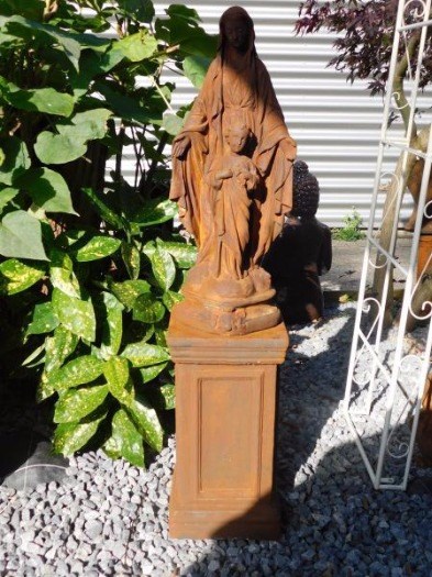 Levering: 1 x maria met kind op sokkel, vol steen oxide