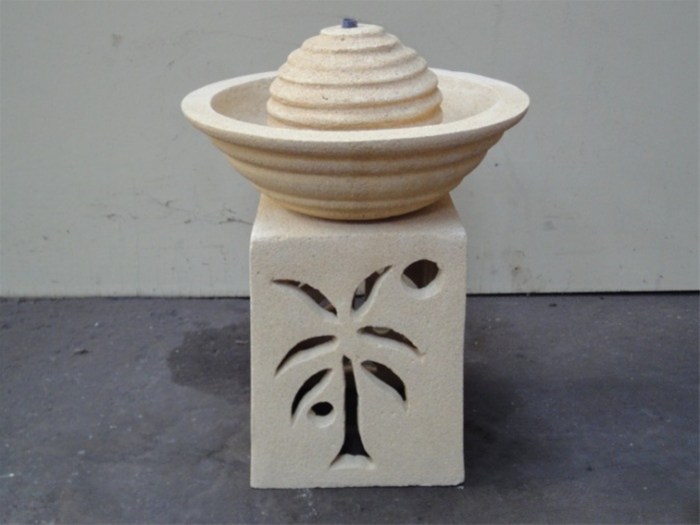 Deze handige fontein past door zijn mooi afgewerkte uitstraling thuis in ieder zijn tuin. Tevens is de schaal geschikt als vogelbadje. De fontein bestaat uit drie delen; een voetstuk, een schaal en bol waar door middel van een tuitje het water uit spuit.