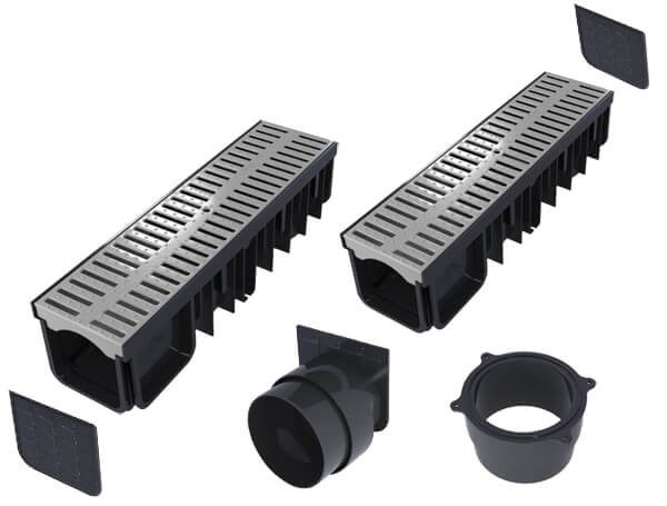 Onze afvoergoot/ lijngoot sets bevatten alle onderdelen die u nodig heeft voor de complete installatie: