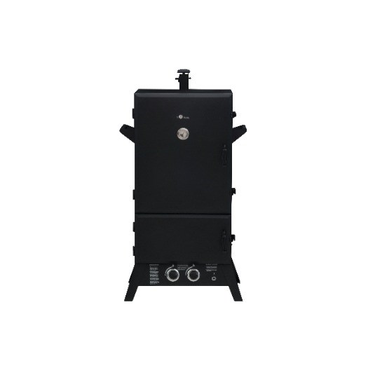Extra krachtige en supergrote gasgestookte rookkast. De rookkast heeft twee gietijzeren branders á 2,93 kW (5,86 kW) die gelijkmatige warmte en rook in de kast genereren. 6 stuks verchroomde rookroosters á 56 x 36 cm. Boven in de rookkamer zijn haken bevestigd, waar hele vissen aan kunnen worden opgehangen. De geëmailleerde water/vet opvang schaal wordt onder de roosters geplaatst. De rookchips worden ook in een geëmailleerde schaal geplaatst. De chips schaal en brander bevinden zich in een aparte kamer, die tijdens het roken kan worden geopend, zonder temperatuur te verliezen in de kamer. Handgrepen vergemakkelijken het tillen en verplaatsen van de smoker. De schoorsteen heeft een klep om de hoeveelheid rook in de roker te regelen. Met de thermometer kun je de temperatuur in de roker eenvoudig controleren.