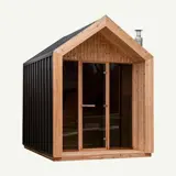 De Hudson buitensauna heeft een fraai en modern design met een zadeldak dat zorgt voor een elegante uitstraling. Waar het interieur van de Hudson volledig van red cederhout is gemaakt, is het exterieur voorzien van antraciet gepoedercoat metaal. Dit maakt de sauna 100% waterdicht. Verder is de moderne buitensauna volledig geïsoleerd.