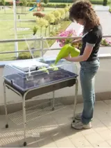 Verder is de kweekast uit te breiden en mobiel te maken met een verrijdbaar onderstel met opbergrek ( zie foto 2 ) Afmeting 82x51x72 meerprijs € 50,-