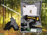 Deze accu snoeischaar van Volpi is ideaal voor de veeleisende hobbyst maar ook de proffesional zal met deze accu schaar uit de voeten kunnen, de accu snoeischaar is uitgevoerd met 2 lithuim accu’s met een gebruiksduur van 3,5 uur per accu. De schaar heeft een borsteloze 150w motor. Werking is heel eenvoudig met deze accu schaar en is uitgevoerd met een display waar het accu percentage en aantal knip keren staat. Bij de PV295 accu snoeischaar is het mogelijk om de bek grootte in te stellen. De stalen messen van de Volpi snoeischaar zijn zeer simpel te vervangen en e.v.t. te slijpen