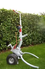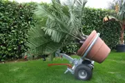 Transportkar voor bomen, planten en zware lasten Transportkar voor bomen , planten en zware lasten. Nieuw! De ideale oplossing voor het verplaatsen van zware boomcontainers, planten en andere zware lasten door één persoon. In samenspel met één in hoogte verstelbare handgreep en voettrap wordt een enorme hefboomwerking verkregen waardoor het verplaatsen van zware lasten aangenaam verlicht wordt. De transportkar bestaat uit verzinkt staal en is uiterst robuust en stabiel. De maximale aslast bedraagt 500 kg. De wielen zijn kogel gelagerd , met brede luchtbanden op stalen velgen waardoor deze karren uitstekende rij eigenschappen hebben op oneffen terrein.