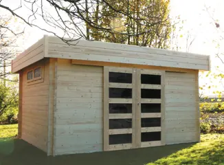 Modern tuinhuis uit gecertificeerd en IMP Noord-Europees vurenhout klasse III.