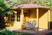 Goedkoop tuinhuis met overkapping.