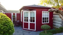 Goedkoop vijhoekig tuinhuis.