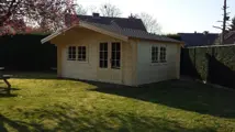 Goedkoop tuinhuis in 50mm dik scandinavisch vuren hout.