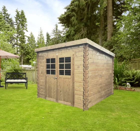 Blokhut van 19 mm dik, een dubbele deur met glas, overschilderbaar, dakhelling van 3°, roofing,>