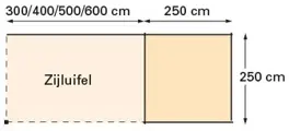 • Overstek zijkanten: 25 cm