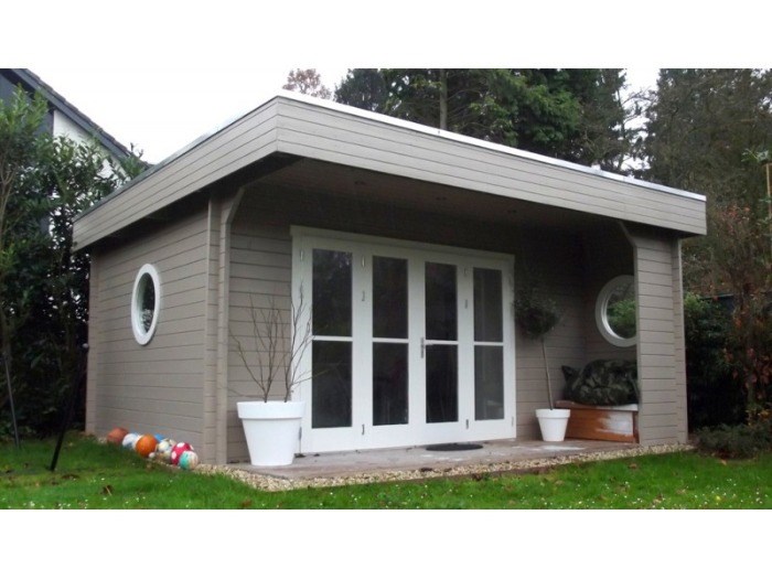 Goedkoop modern tuinhuis in 50mm scandinavisch vuren hout.