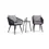 Elke stoel in de set kenmerkt zich door een uniek design met geweven ‘ropes’ van weerbestendig materiaal, die niet alleen visueel aantrekkelijk zijn, maar ook een uitzonderlijk zitcomfort bieden. Het aluminium frame van de set is zowel lichtgewicht als robuust, waardoor het makkelijk te verplaatsen is en tegelijkertijd bestand is tegen de invloeden van het weer. De antracietkleurige poedercoating zorgt niet alleen voor een stijlvolle uitstraling, maar biedt ook extra bescherming tegen roest en slijtage.