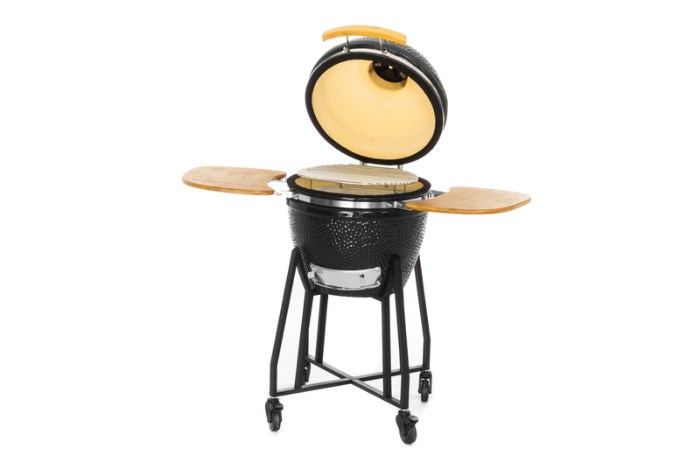 DE 18” Kamado houtskool grill barbecue van Mustang. Duurzame keramische houtskool grill/smoker/oven vervaardigd van de beste materialen. Met een temperatuurbereik van 82 °C – 399 °C. Keramische behuizing met RVS scharnieren. Gietijzeren regelbare ventilatie roosters bovenop. Zij-tafels van bamboe. RVS thermometer, RVS as opvangbak en RVS onderstel! Het onderstel is voorzien van 4 zwenkwielen waarvan 2 geremd.