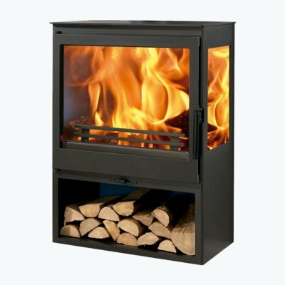 De houtkachel de mogelijkheid om houtblokken tot 50 cm op te slaan in zijn houtopslag, die functionaliteit toevoegt met een vleugje elegantie.